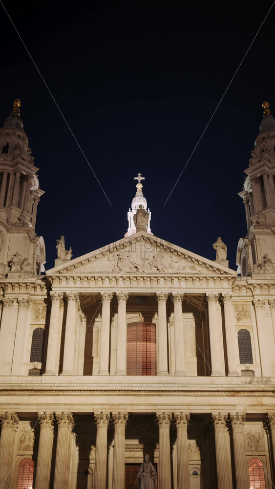 The Dome of St. Paul’s Cathedral trees with the night sky in the background in London, England. Vertical Royalty Free Stock Video Footage