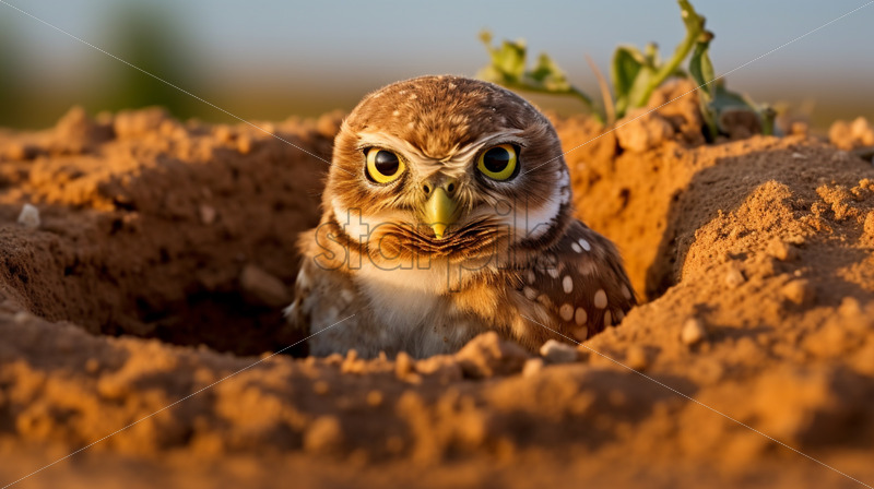 Home » Shop » Uncategorised » The elusive and nocturnal Burrowing owl emerging from its desert nest