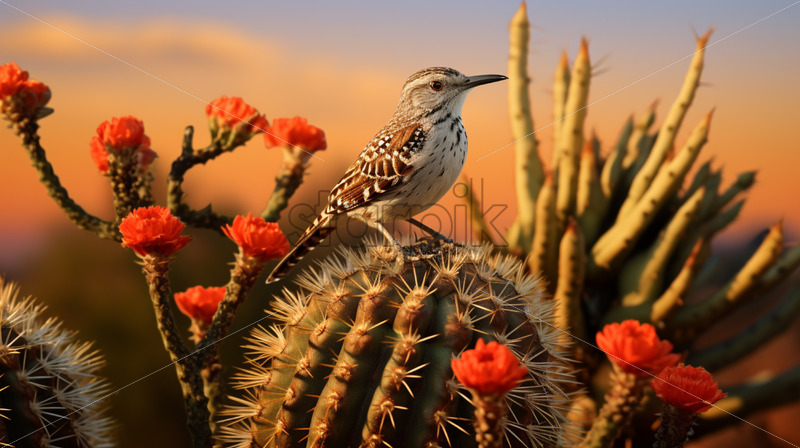 The elusive and well-camouflaged cactus wren building its nest in a desert thicket