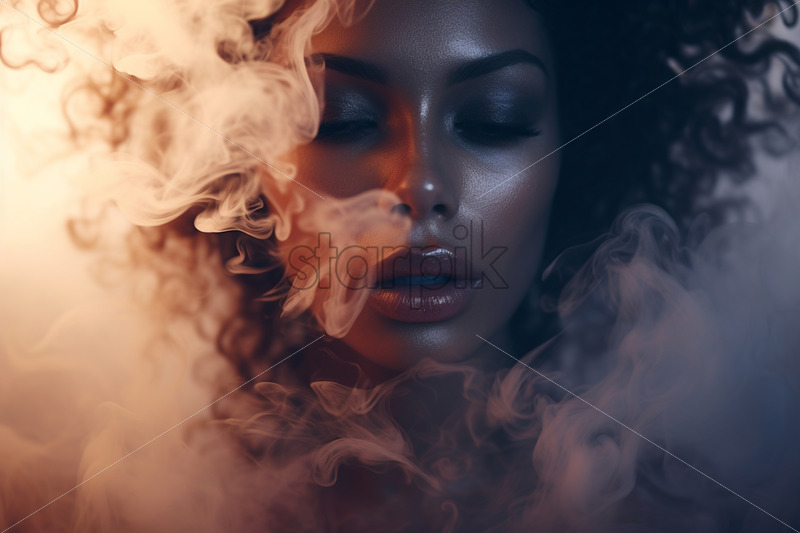 Close-up shot of a young caucasian girl with curly long dark brown hair and bangs. Freckles on the face. White dress. Expressing tenderness. Isolated background