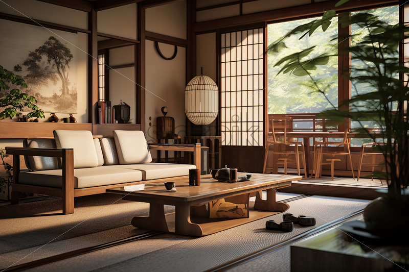 The interior of a living room in Japanese style