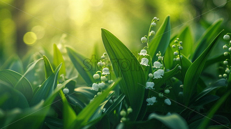 The intricate patterns of lily-of-the-valley hiding beneath lush foliage