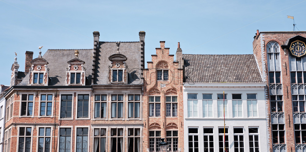 City buildings facade at Grand Place in a sunny day. Bright clear sky on background. Negative copy space, place for text. Brussels, Belgium Royalty Free Stock photo