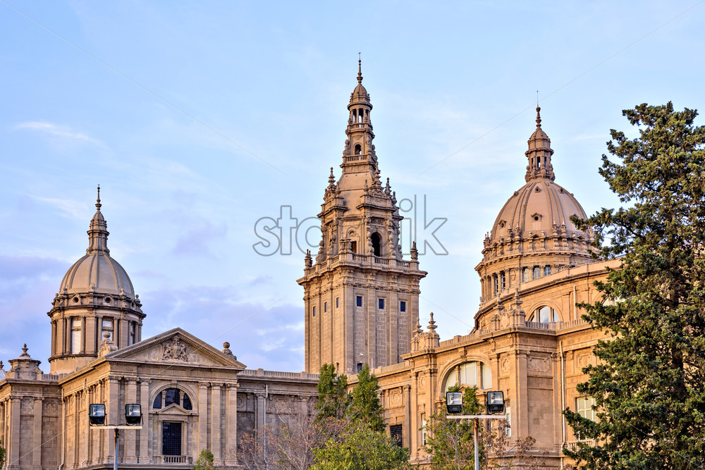 BARCELONA, SPAIN – JUNE 19, 2021: National museum of Catalan visual art. Cloudy sky