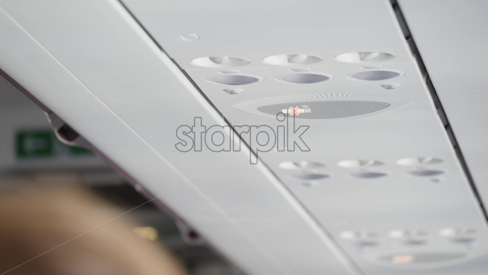 The panels above the airplane seats and the no smoking sign Royalty Free Stock Video Footage