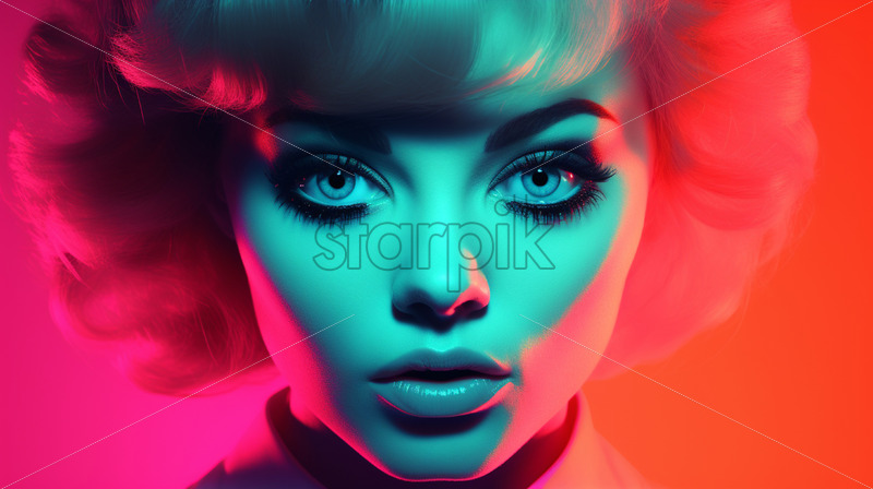 Caucasian woman in dress with view of Barcelona on the background, Spain