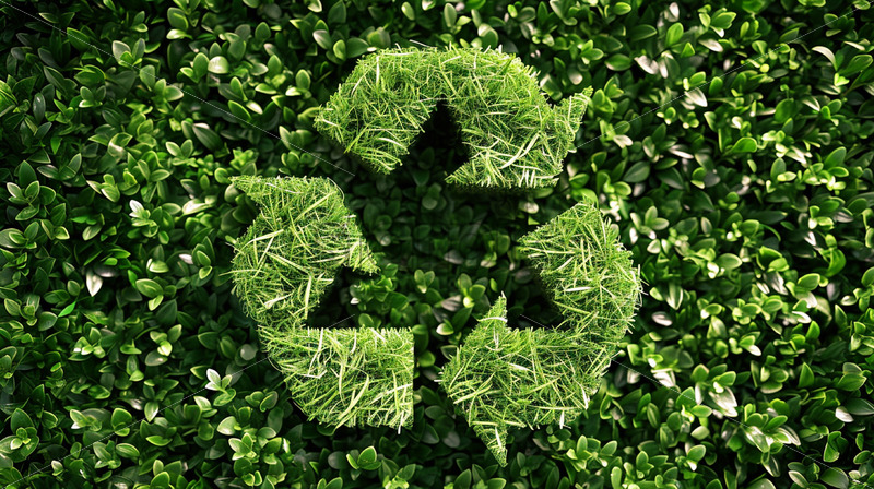 Man at plastic garbage collecting in a polluted park. Rubber gloves, holding a container with plastic bottles. Recycling signs on the T-shirt and container