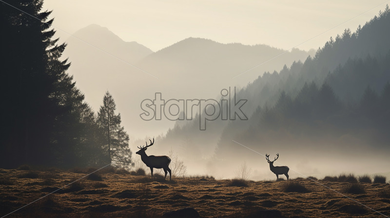 The silhouette of a fox on a plain at sunset, created in 2d software