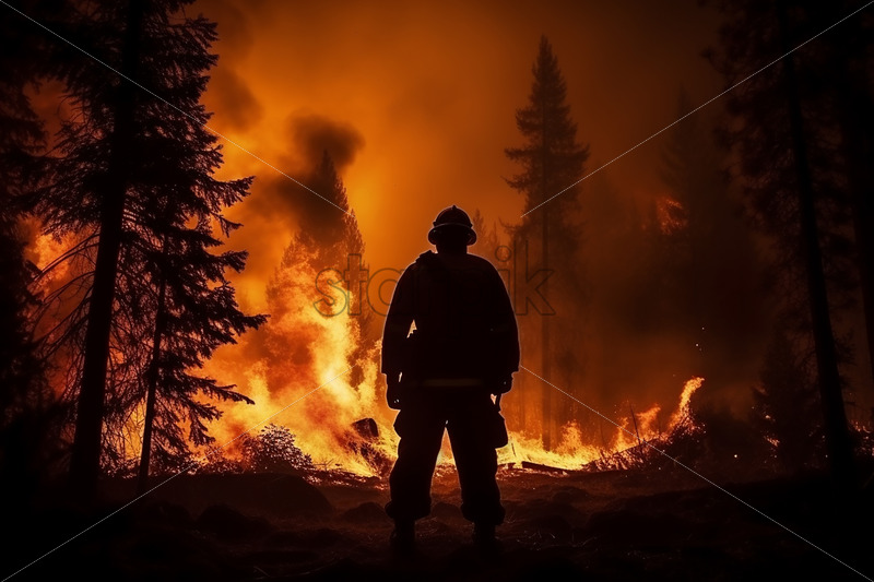 Home » Shop » Uncategorised » The silhouette of a firefighter on the background of a fire
