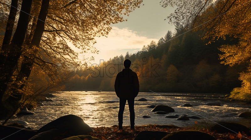 Lake near forest with reflection, reed in Taul Park, north of Moldova