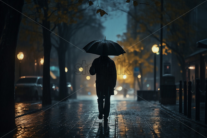 CHISINAU, MOLDOVA – DECEMBER 4, 2020: Silhouette of a person visible through the transparent wet wall of a bus stop, street on the background, blue illumination, night