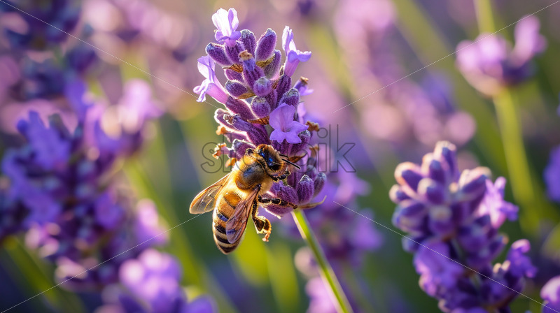 The soft hum of bees busy pollinating vibrant purple lavender bushes
