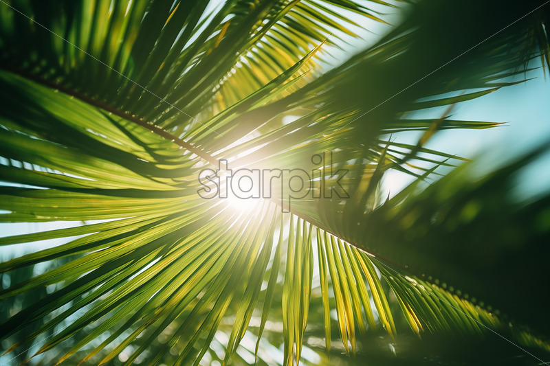 Close ip of fresh green palm leaves swaying gently in daylight Royalty Free Stock Video Footage