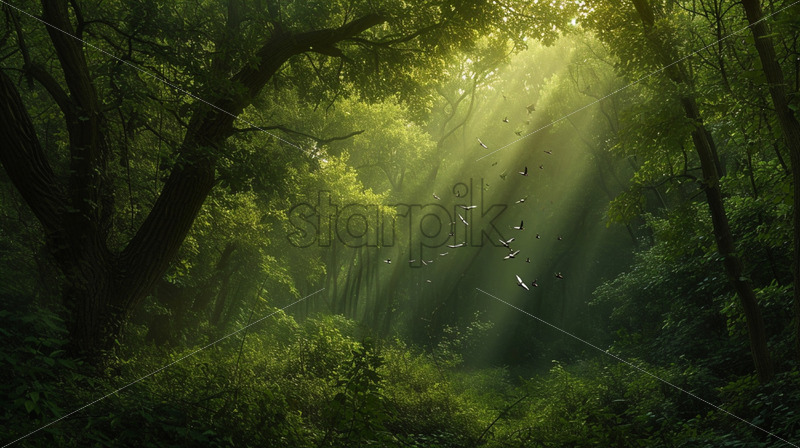 Group of colorful macaws engaged in vibrant midday chatter amid lush foliage