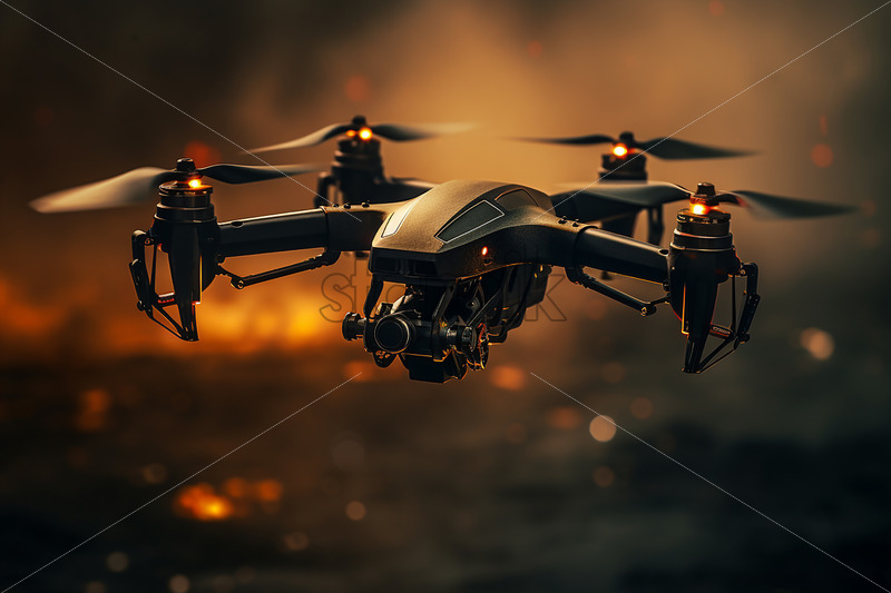 Drone flying and filming near flashing studio lights and camera equipment on a TV set Royalty Free Stock Video Footage Royalty Free Stock Video Footage
