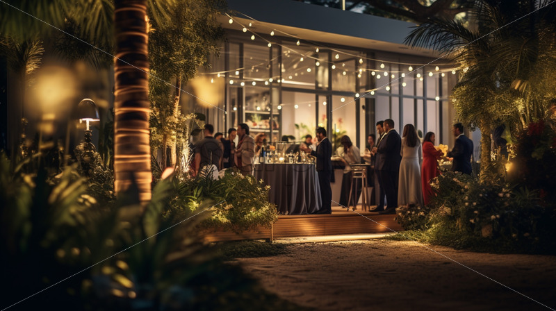 The warm and welcoming atmosphere as guests arrive at the party venue