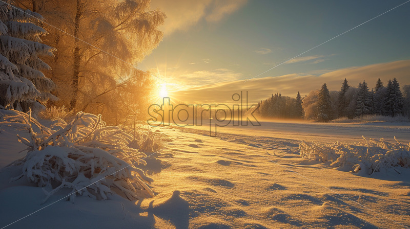 A mesmerizing sunrise breaking through the jungle canopy, casting a warm glow on the verdant landscape