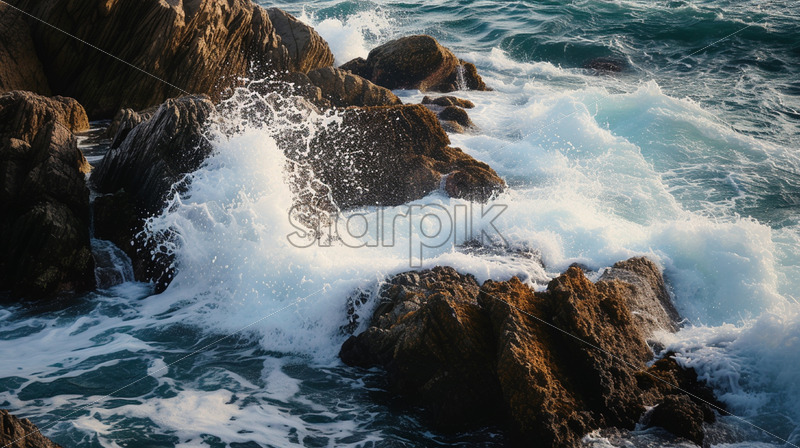 Close up of waves hitting the rocks on the beach in Cannes, France Royalty Free Stock Video Footage
