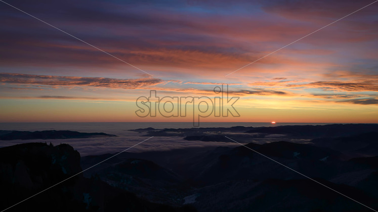 Timelapse of sunrise in Ceahlau National Park, Romania Royalty Free Stock Video Footage