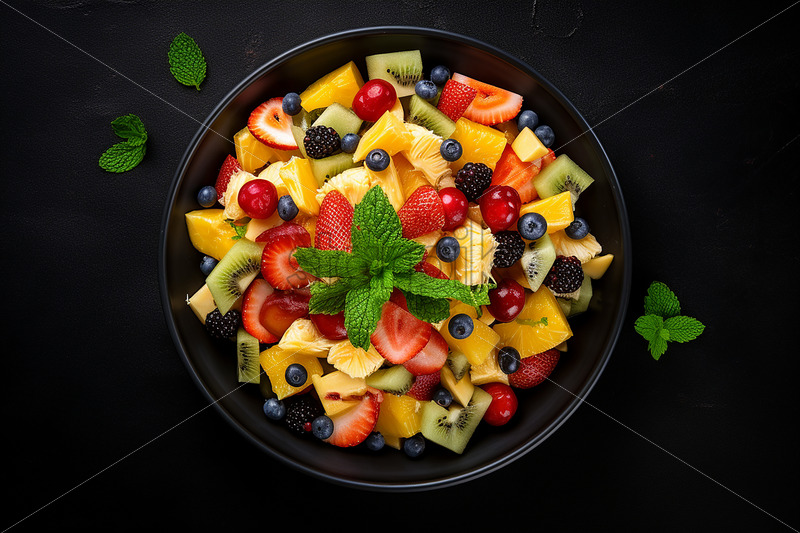 Close vertical view of three poke bowls with vegetables, fruits, fish and seaweed salad
