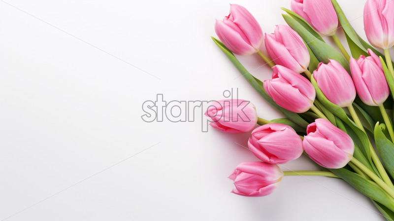 Home » Shop » Uncategorised » Top view pink tulips on isolated white background. Mother’s day concept