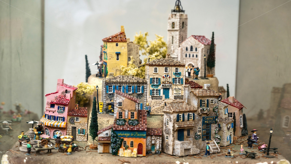 MENTON, FRANCE – SEPTEMBER 9, 2021: Art installation with view of the town