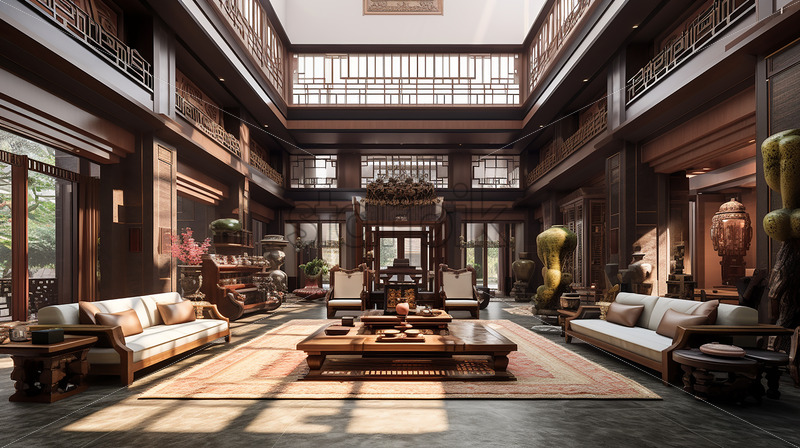 traditional house architecture in the country side with clear glass wall and classic ambience clear glass wooden stair and traditional furniture