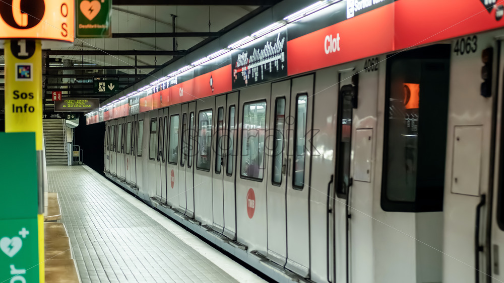 BARCELONA, SPAIN – NOVEMBER, 2021: Train with close doors on a subway station