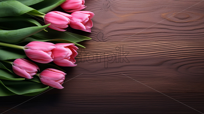 Tulip flowers on a wooden surface