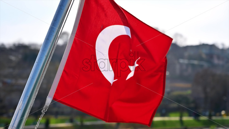 Turkish flag waving on a boat, slow motion Royalty Free Stock Video Footage
