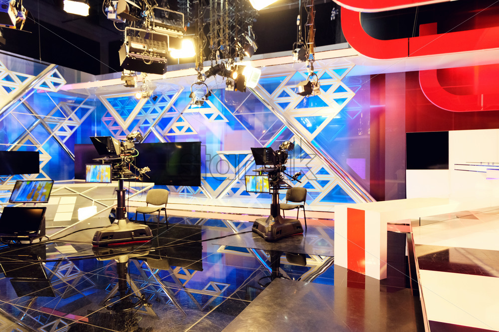 Home » Shop » photo » TV broadcasting studio with light equipment and cameras ready for recordings