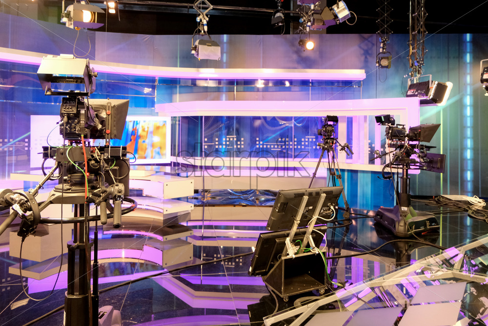 Home » Shop » photo » TV broadcasting studio with light equipment and cameras ready for recordings