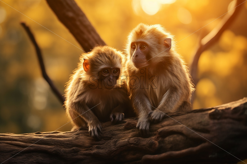 Home » Shop » AI Illustration » Two monkeys are sitting on a branch of a tropical tree