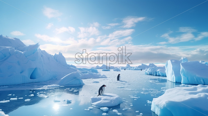 A little bird on a tree trunk, a frozen lake in the background, winter atmosphere