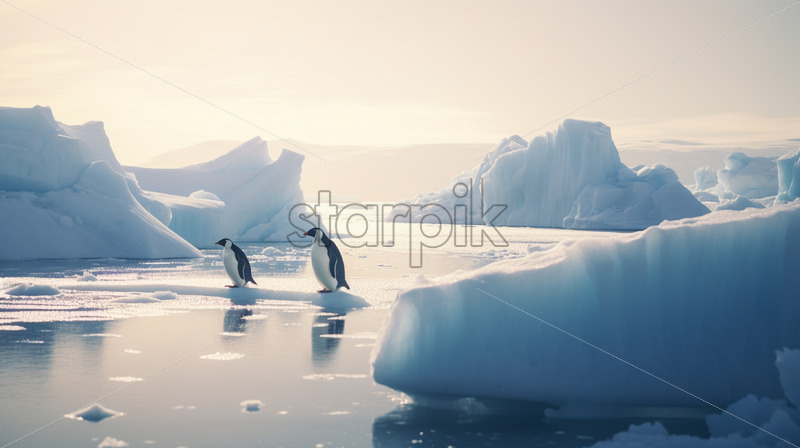 Home » Shop » Uncategorised » Two penguins sitting on icebergs in polar regions