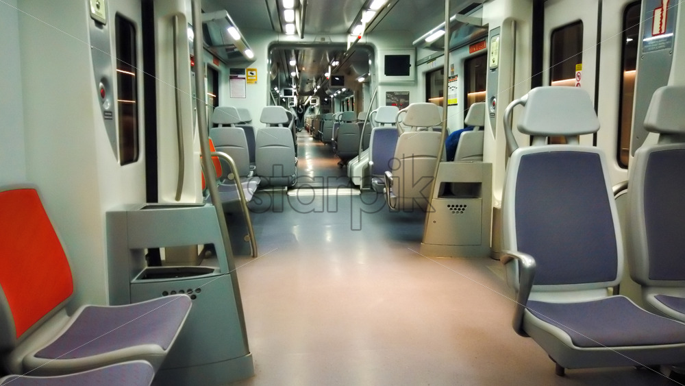 BERLIN, GERMANY – SEPTEMBER, 2022: Interior of an underground moving train with multiple people