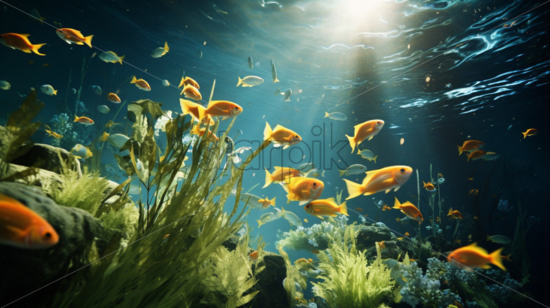 Underwater sea with gold fish.Marine life