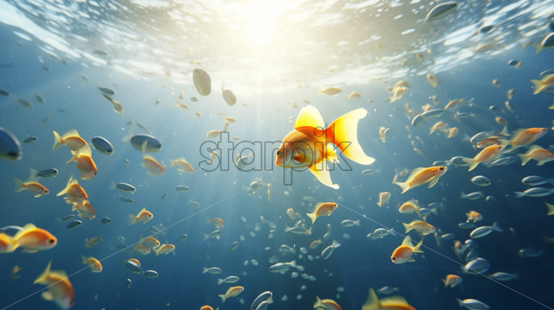 Jellyfish swimming underwater, beautiful orange jellyfish.Ocean life