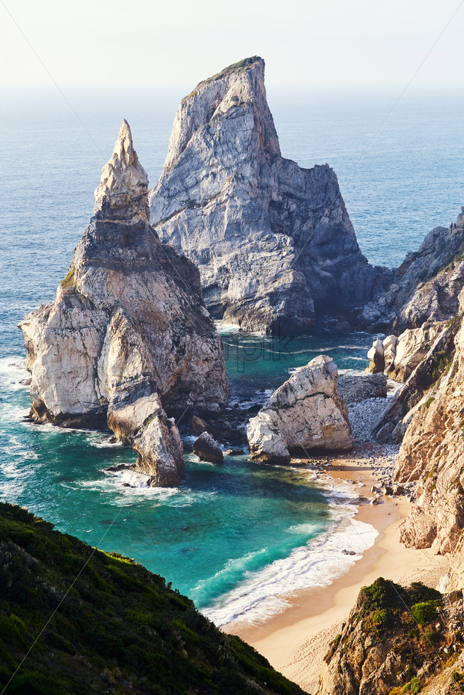 Ursa Beach coastline with rocks on background. Lisbon, Portugal