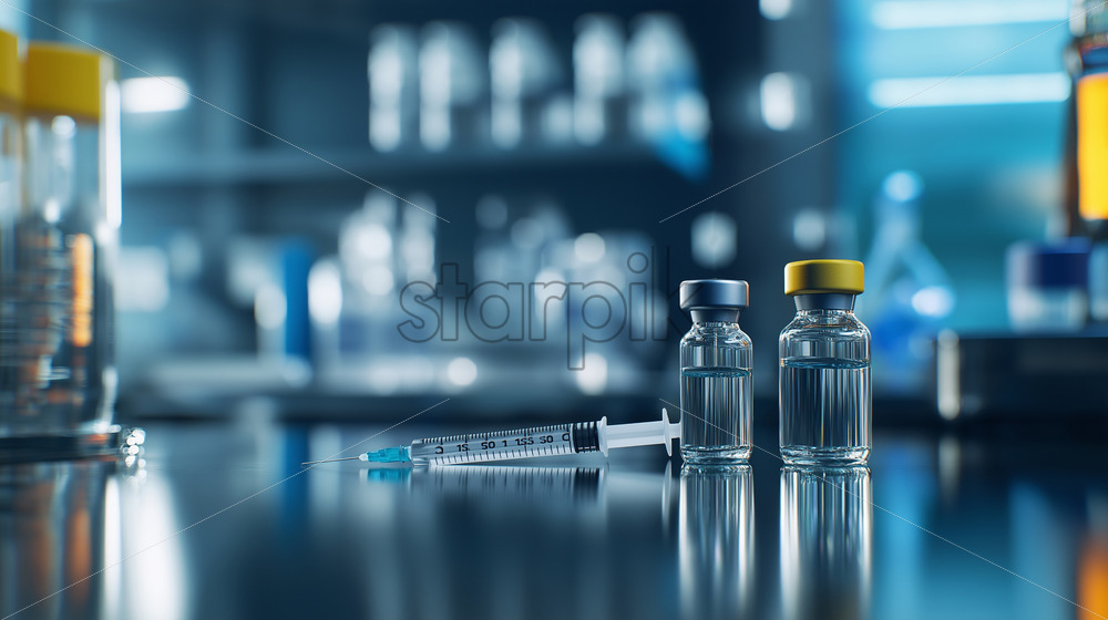 A syringe approaches a vibrant cell, preparing to inject a solution in a clean laboratory environment. The focus is on cellular interaction and scientific research processes.