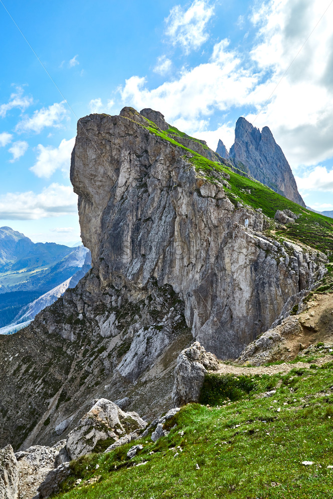 Home » Shop » photo » Val Gardena meadow fields and mountains. Dolomites, Italy