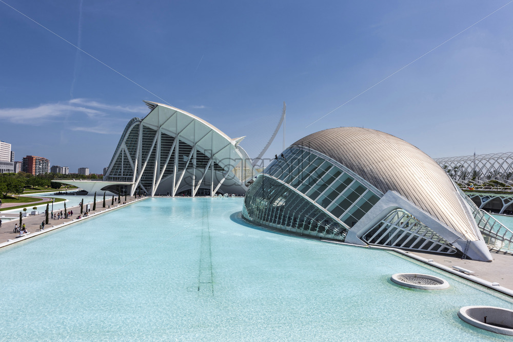 VALENCIA, SPAIN – APRIL 16, 2019: Museum of Natural Sciences in Valencia, also called the City of Arts. Wide angle shot during a beautiful sunny day