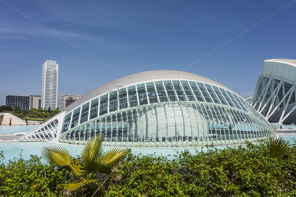 VALENCIA, SPAIN – APRIL 16, 2019: Museum of Natural Sciences in Valencia, also called the City of Arts. Wide angle shot during a beautiful sunny day