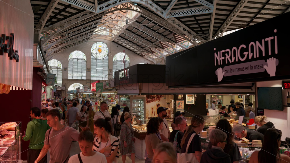 View of the inside of the the Mercado Central of Valencia, Spain Royalty Free Stock Video Footage