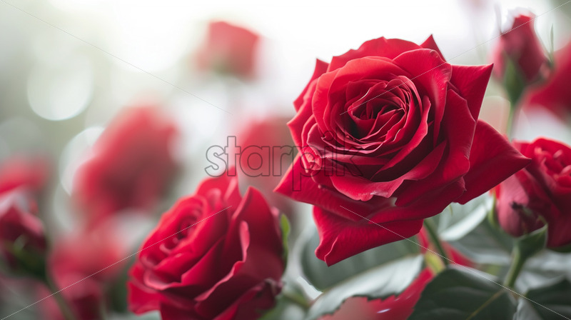 Valentine’s Day postcard with champagne glasses and roses to celebrate Valentine on white background