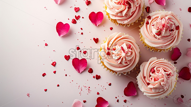 Valentine’s Day postcard with cupcakes on a white isolate background