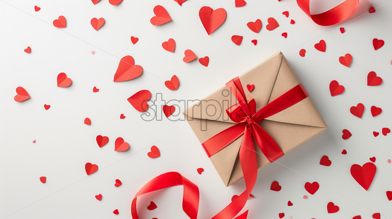 Valentine’s Day postcard with gift heart shape, roses and candles on white background