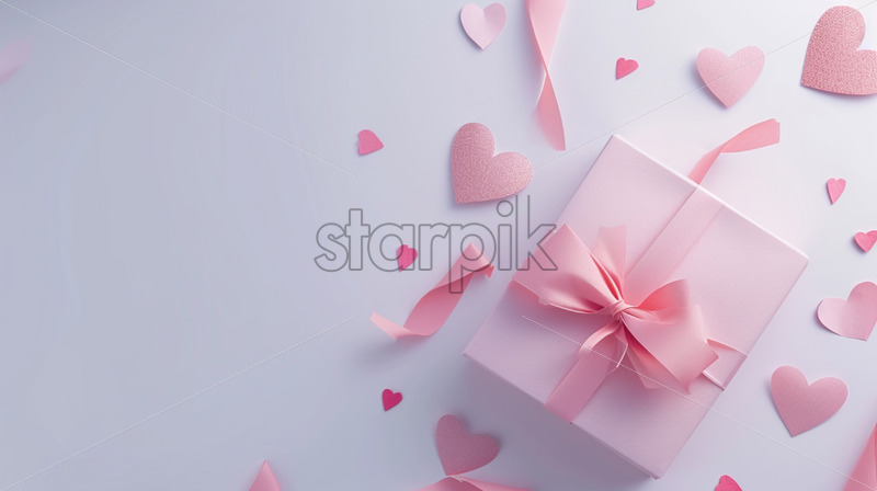 Valentine’s Day postcard with many small pink hearts on white background