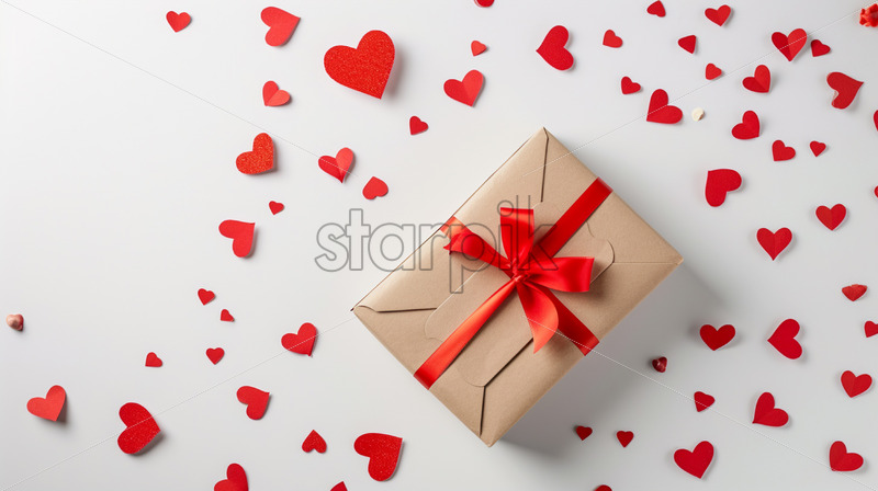 Valentine’s Day postcard with gift heart shape, roses and candles on white background