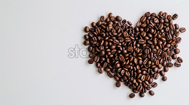 Valentine’s Day postcard with heart from coffee beans on white background